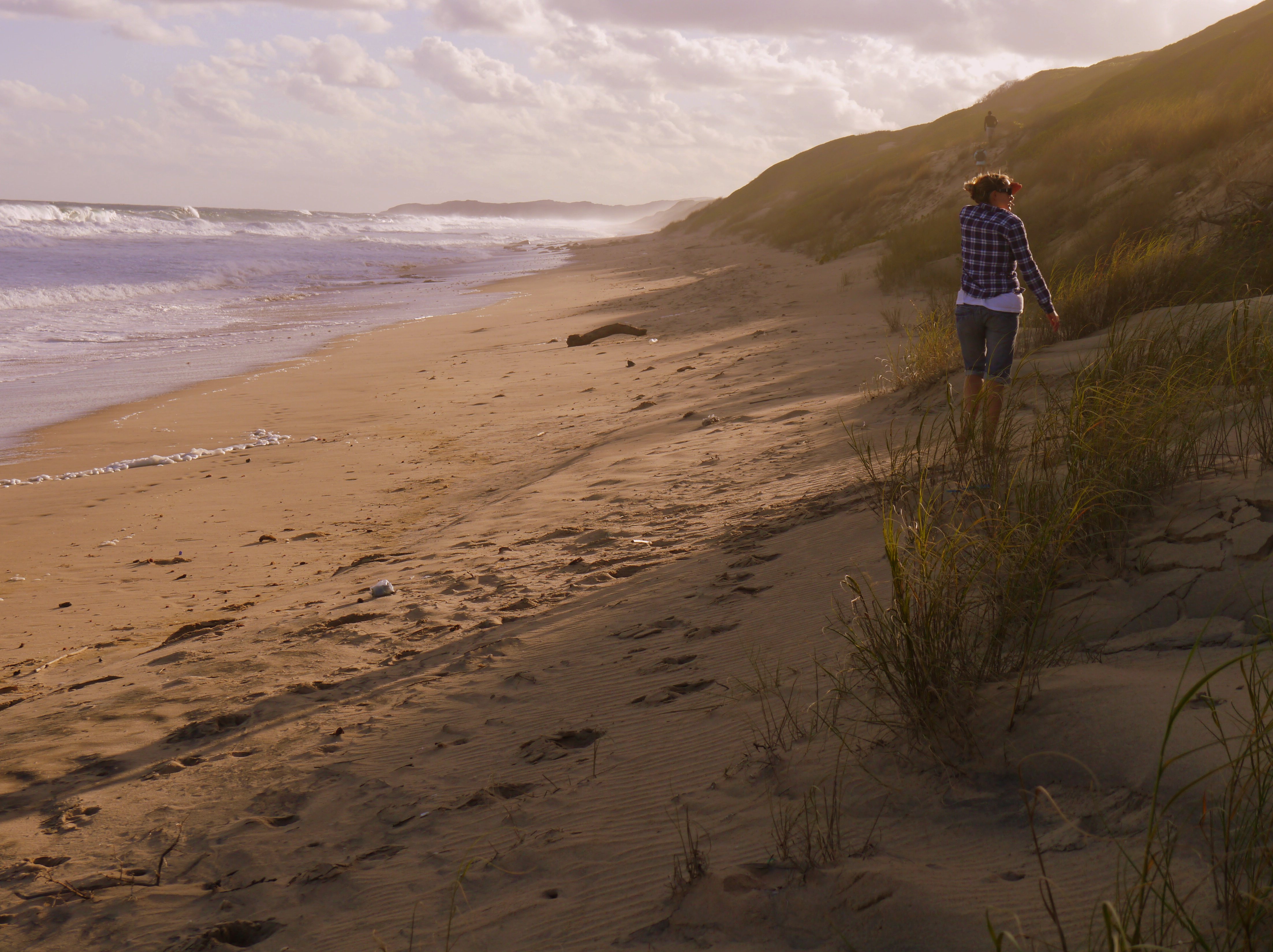 Taking in the beautiful afternoon light whilst conducting the turtle mortality transect. The sand dunes are densely vegetated and second highest vegetated dunes in the world, make conducting the transects hard work! Photo- Simon Pierce