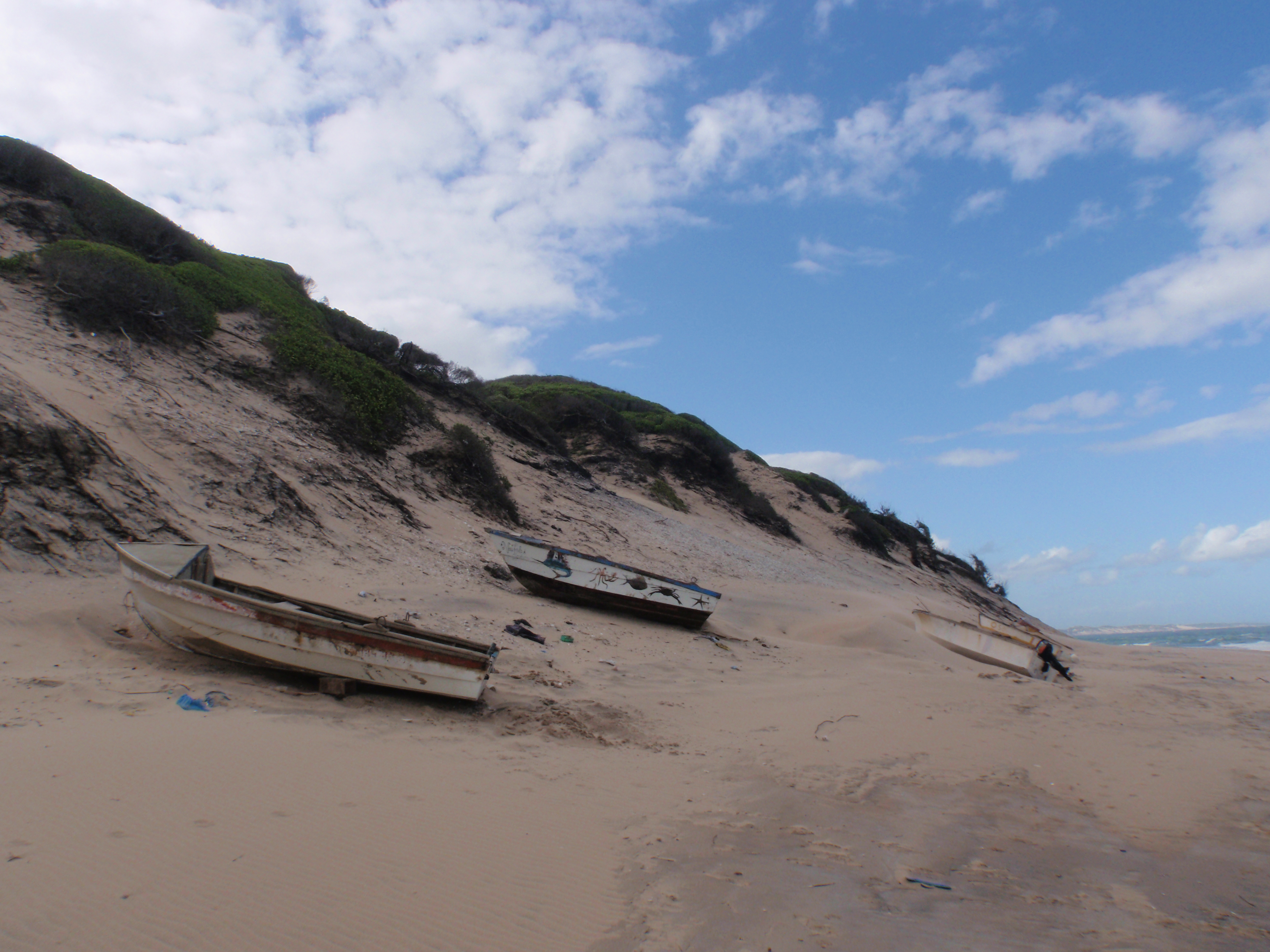We also found evidence of temporary spear fishing camps in the area, however there were no indicators of fresh fishing from these camps. The weather had been particularly rough during our 2 day trip down to Zavora (and preceeding), with strong winds and very large swells prohibiting scuba diving activity and any fishing. Due to the aspect of Zavora’s coastline, the swells that hit the beach are much larger and more frequent than those that come up to Tofo. It is possible the inclement weather works in our favor to minimize the number of days suitable to spear fish and launch wooden oar boats, thus minimizing the opportunities for fishers to encounter a turtle and poach it.