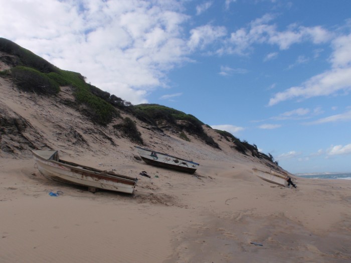 These boats are left along the beach, near the sheltered tidal pools and fishers use the calmer waters to launch these boats in.