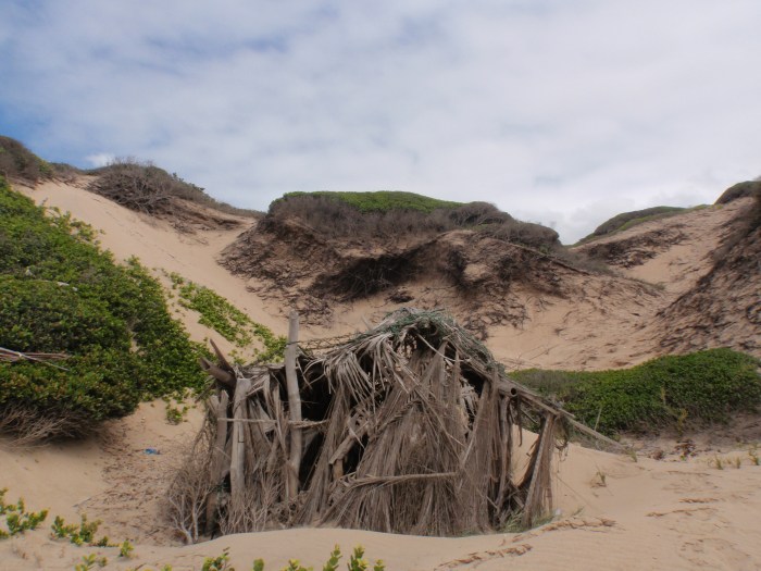 This is a temporary spear fishing camp we found in the sand dunes but there was no fresh activity around.