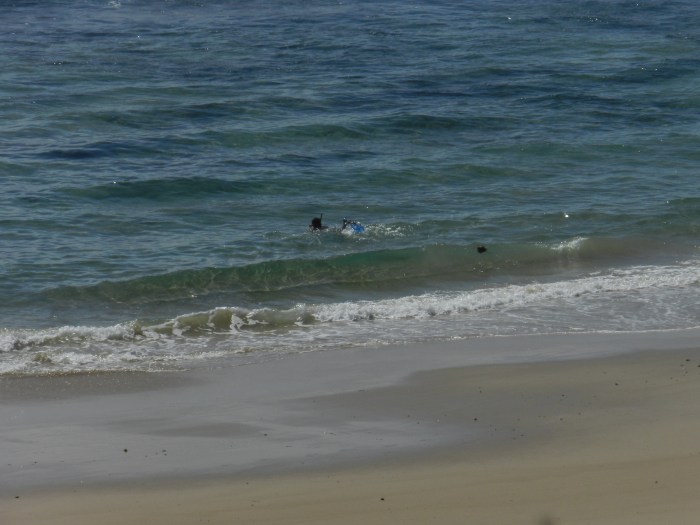 After breakfast and before returning to Tofo, we happened to catch a glimspe of this spear fisher entering the water and searching about in the shallows. Hopefully he did not catch a turtle during his fishing trip.