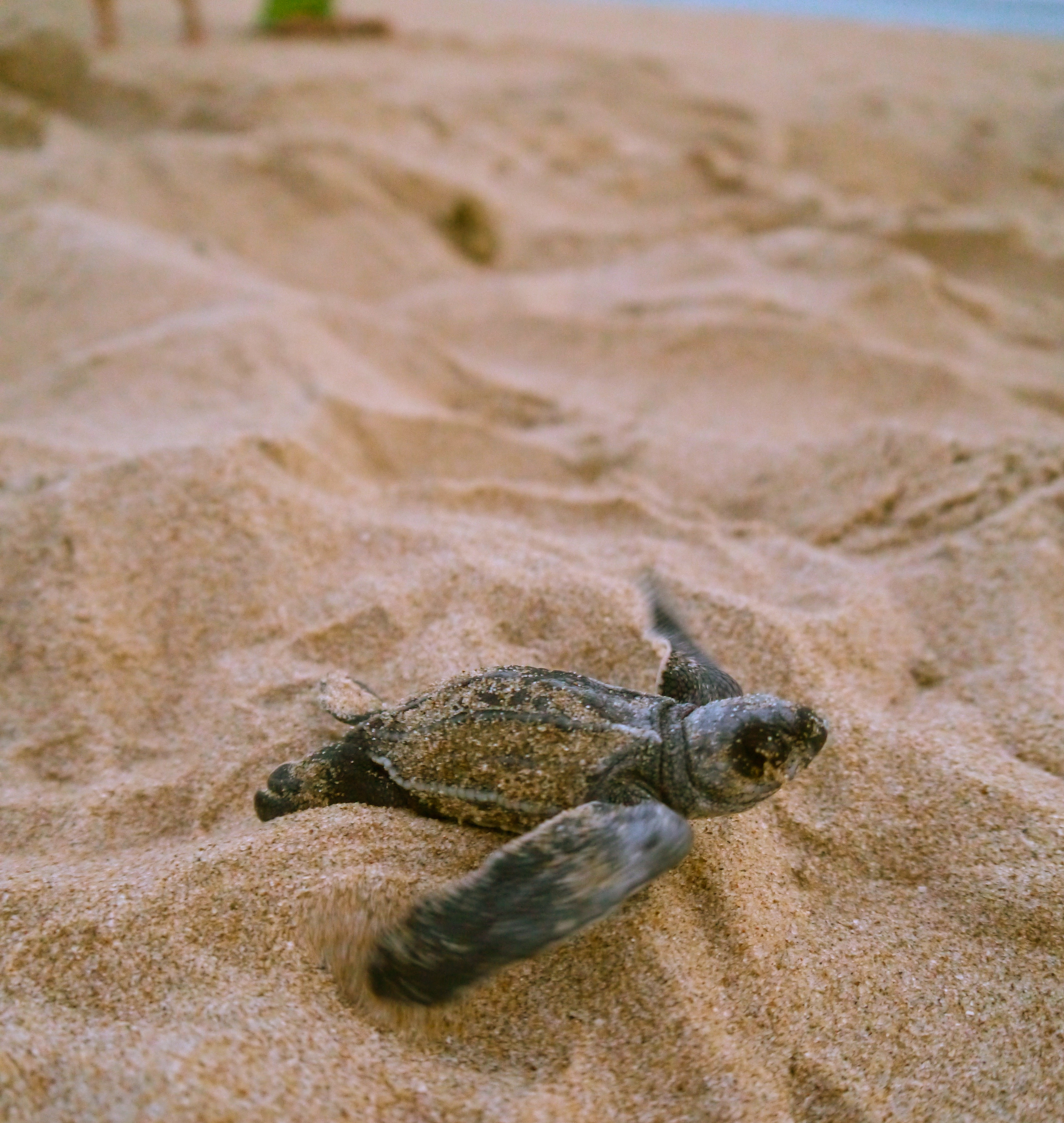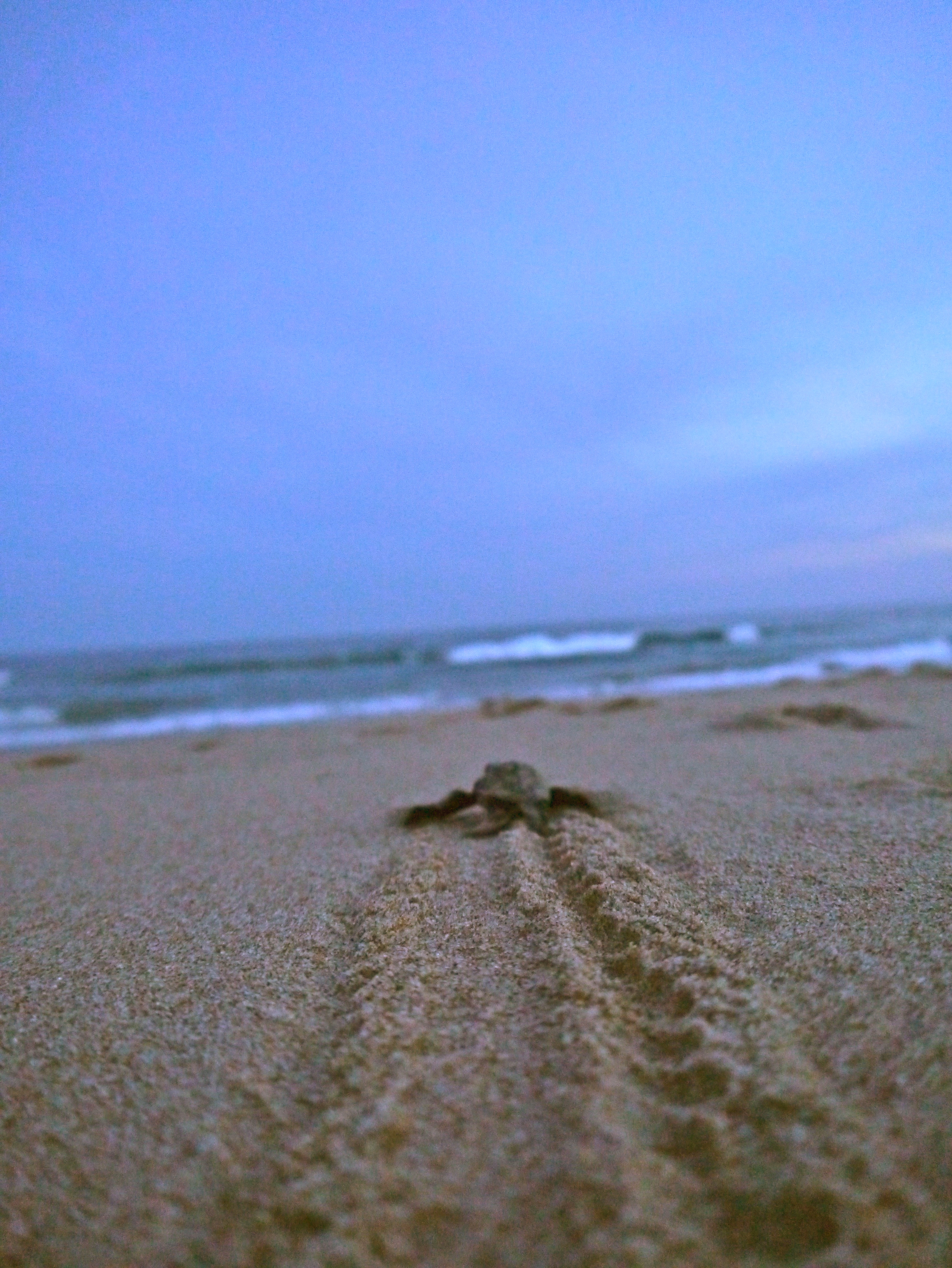 The sun has now set and in the orange and purple haze of the light, we released the two remaining hatchlings, the stragglers of the nest. Although they were slightly smaller than expected and looked a little mis-shapen and dehydrated, once on the beach slope they quickly accelerated their crawling speeds. We all sat back and watched as they crossed the wide beach, as they made progress each split away in a tangent of its own, leaving Hannah, Fiona and myself with one and Alex and Tomas with the other, everyone cheering them to the ocean. Manhame Beach is remote, it feels like your are in the middle of nowhere, and we were essentially, its great for the hatchlings though, because there is no artificial lighting in any direction to disorient them away from their path to the ocean (in which the reflection of the stars and moon at horizon level on the water guide their direction).