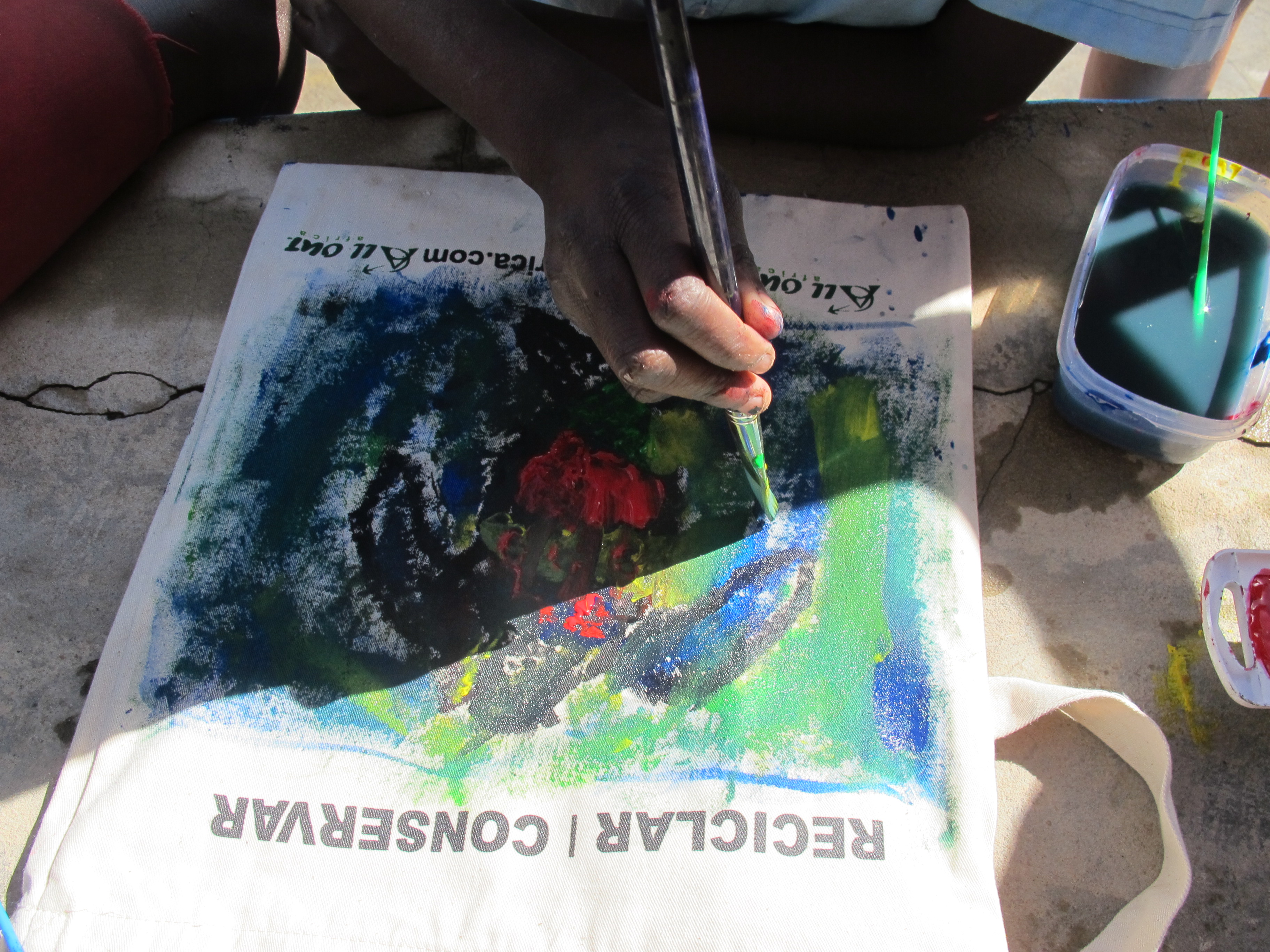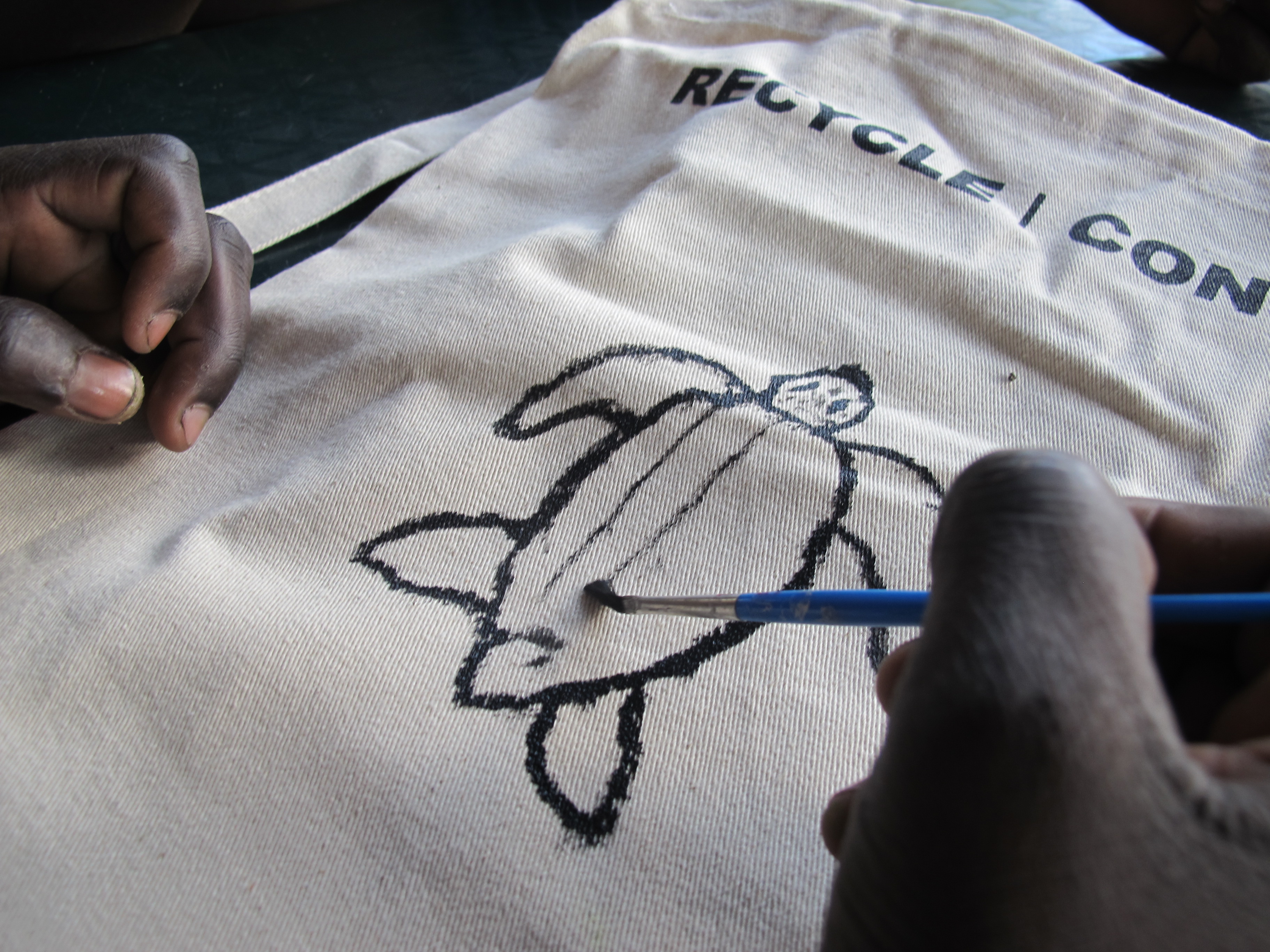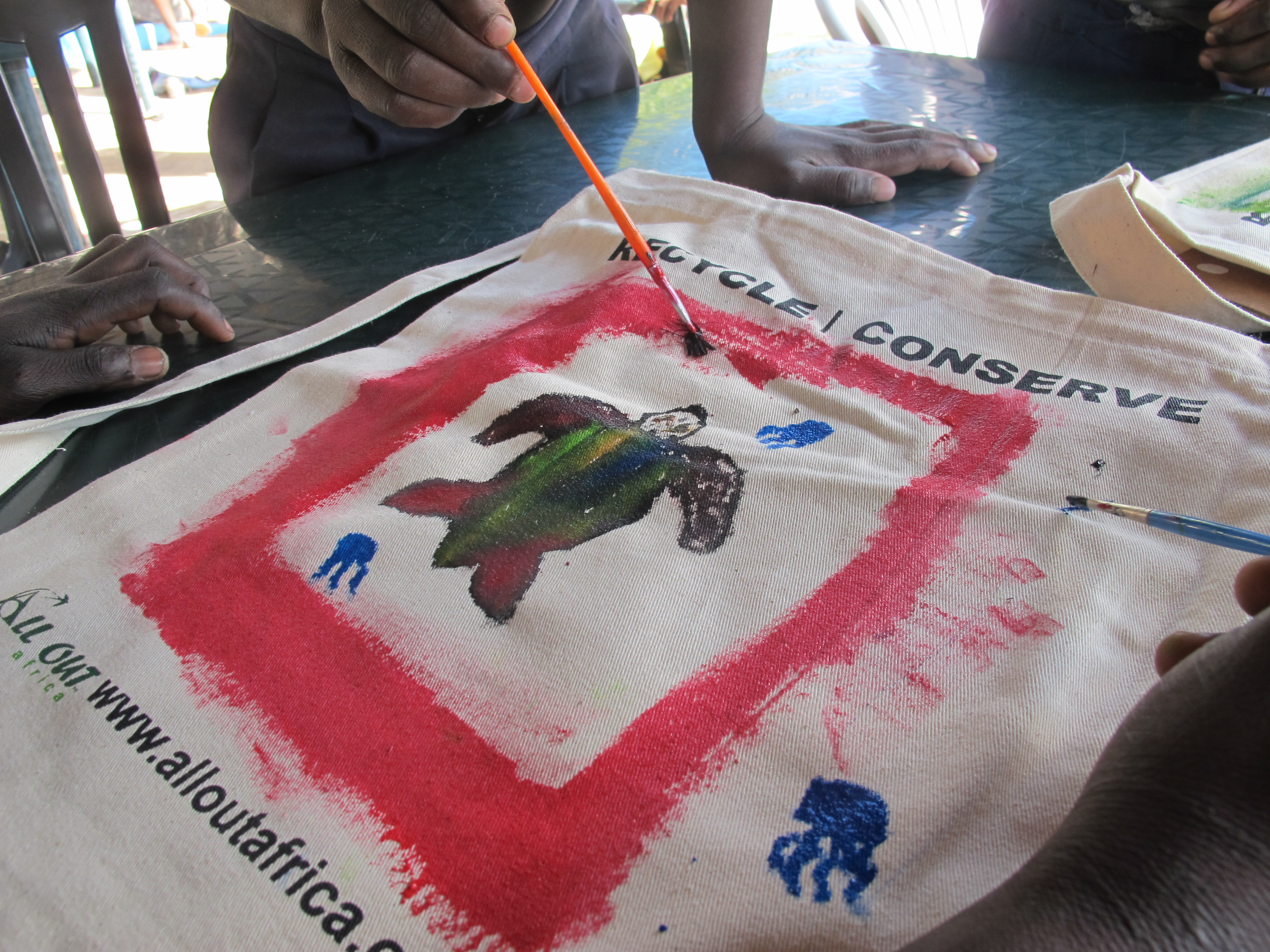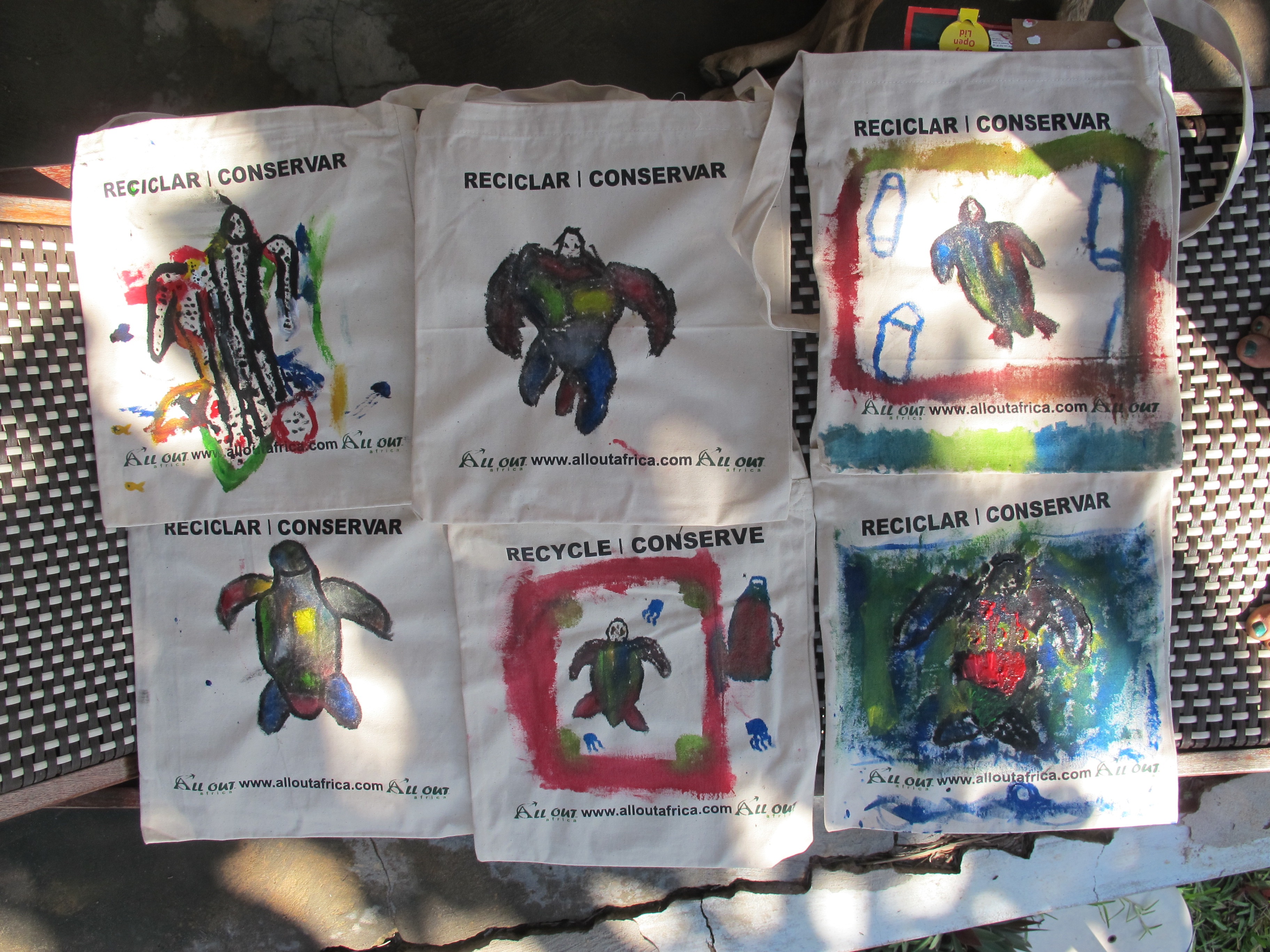 Through a collaborative partnership with All Out Africa and their marine conservation project based here in Tofo, we decided to create a turtle friendly bag activity that could be delivered through various workshops with local coastal communities.