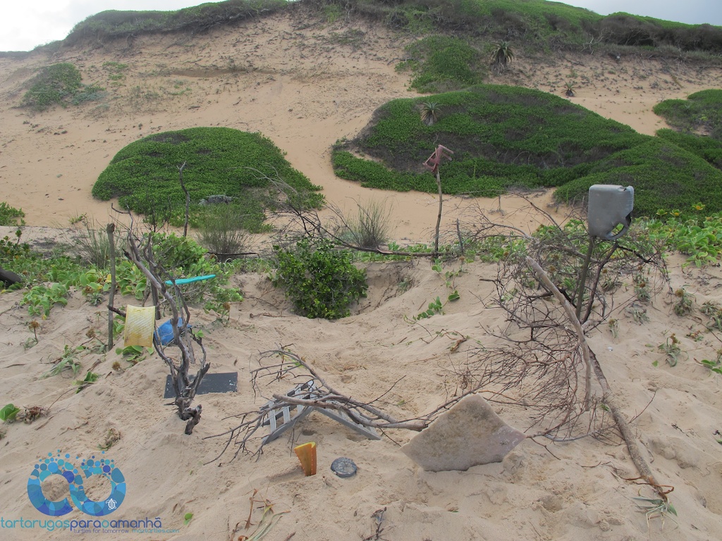 Patrols along Manhame Beach will continue to look for other nesting events, to monitor this nest for signs of disturbance and wait the 60 days, the average incubation period for Leatherback turtles. In the meantime the nest site looks like a cross between some contemporary art installation and the site where one of the local witch doctors has left his message. Flippers crossed for a high success for the growing baby leatherbacks.